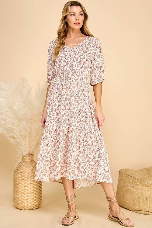 SKU: D2313066APS Made in China Aesthetic: Casual and Classic Care Instructions: Hand wash Dress Style: Fit & Flare Fit: Junior and Missy Neckline: V-neck Occasion Theme: Everyday Occasion: Day Party and Everyday Pattern: Floral Season: Spring/Summer Skirt & Dress Length: Midi Sleeve Length: Short Sleeve Weight: 408.23 g (14.4 oz) Dimensions: 20.3 x 7.6 x 1.3 cm (8 x 3 x 0.5 in) Packaging: Recyclable