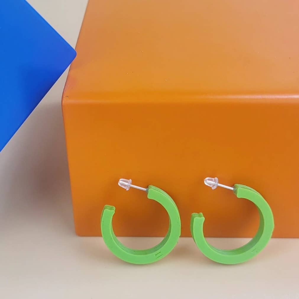3D Printed in plant based PLA bio plastic, a material made from renewable sources; often corn starch. Hand finished and complete with recycled silver posts.
