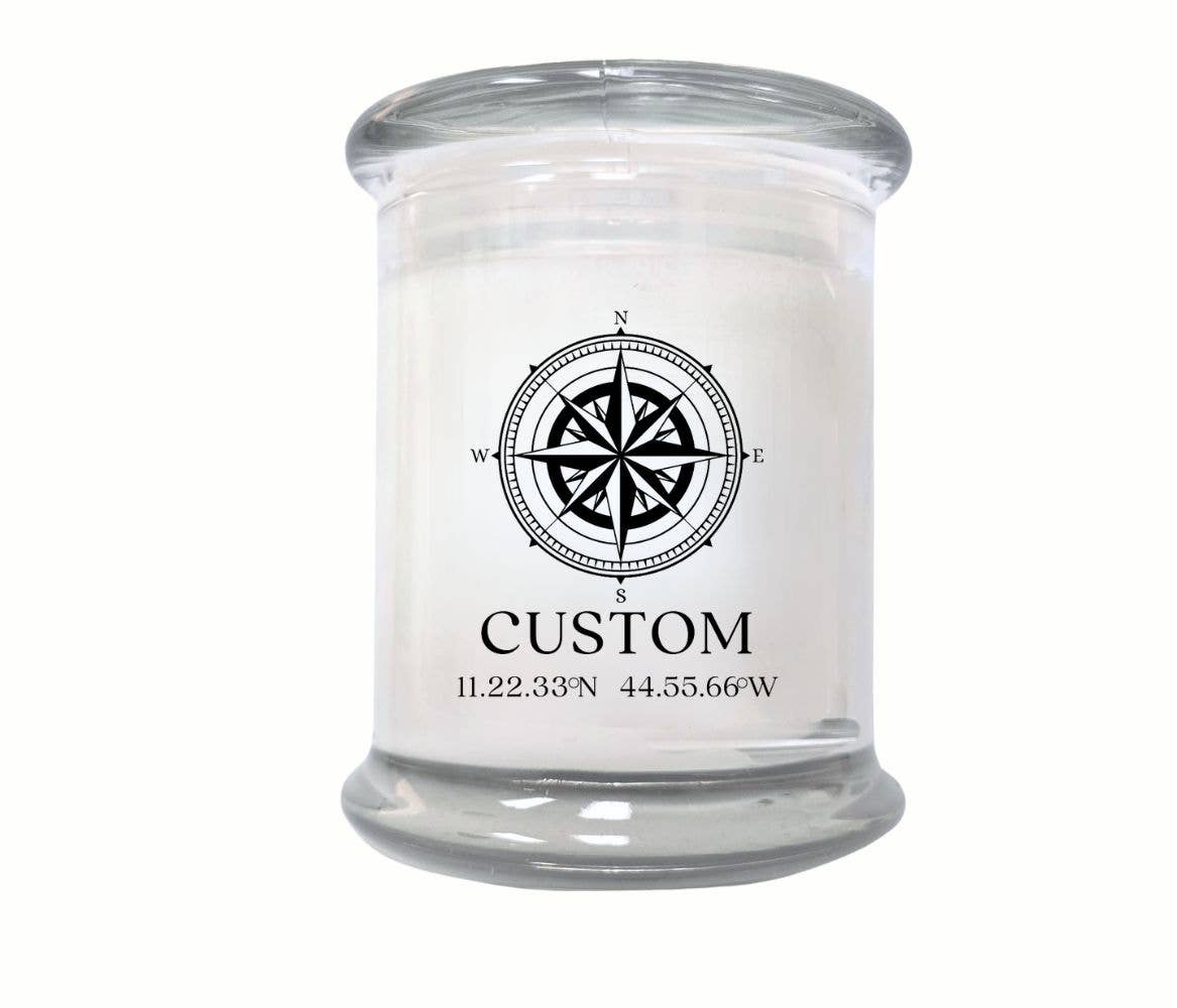 A Hometown Keepsake with a Personalized Touch This charming 12oz candle celebrates local pride with a custom design your customers will love. Inspired by classic New England “Entering” town signs, each label features a bold silhouette of your chosen state and can be personalized with the name of a hometown, favorite destination, or meaningful place—along with its exact coordinates. Available in our signature fragrance options, each candle is hand-poured using an eco-friendly coconut wax blend. They’re clean-burning, dye-free, lead-free, and phthalate-free—making them a safe, sustainable, and thoughtful gift. With its clean design and heartfelt customization, this candle is perfect for state-themed gifts, travel mementos, housewarmings, or anyone who wants to keep a piece of home close. A perfect addition to boutique shelves, especially in local, regional, or souvenir-focused shops. 12oz Glass with Glass Lid - 60-hour burn time Each candle is proudly hand-poured in Massachusetts