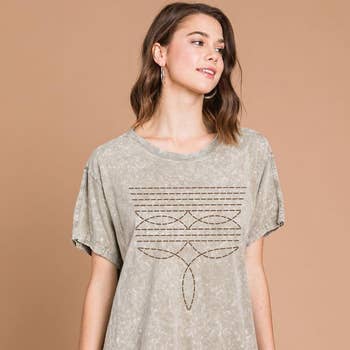Wholesale Cowboy Boots Toe Stitch Graphic S/S Washed Boyfriend Tee