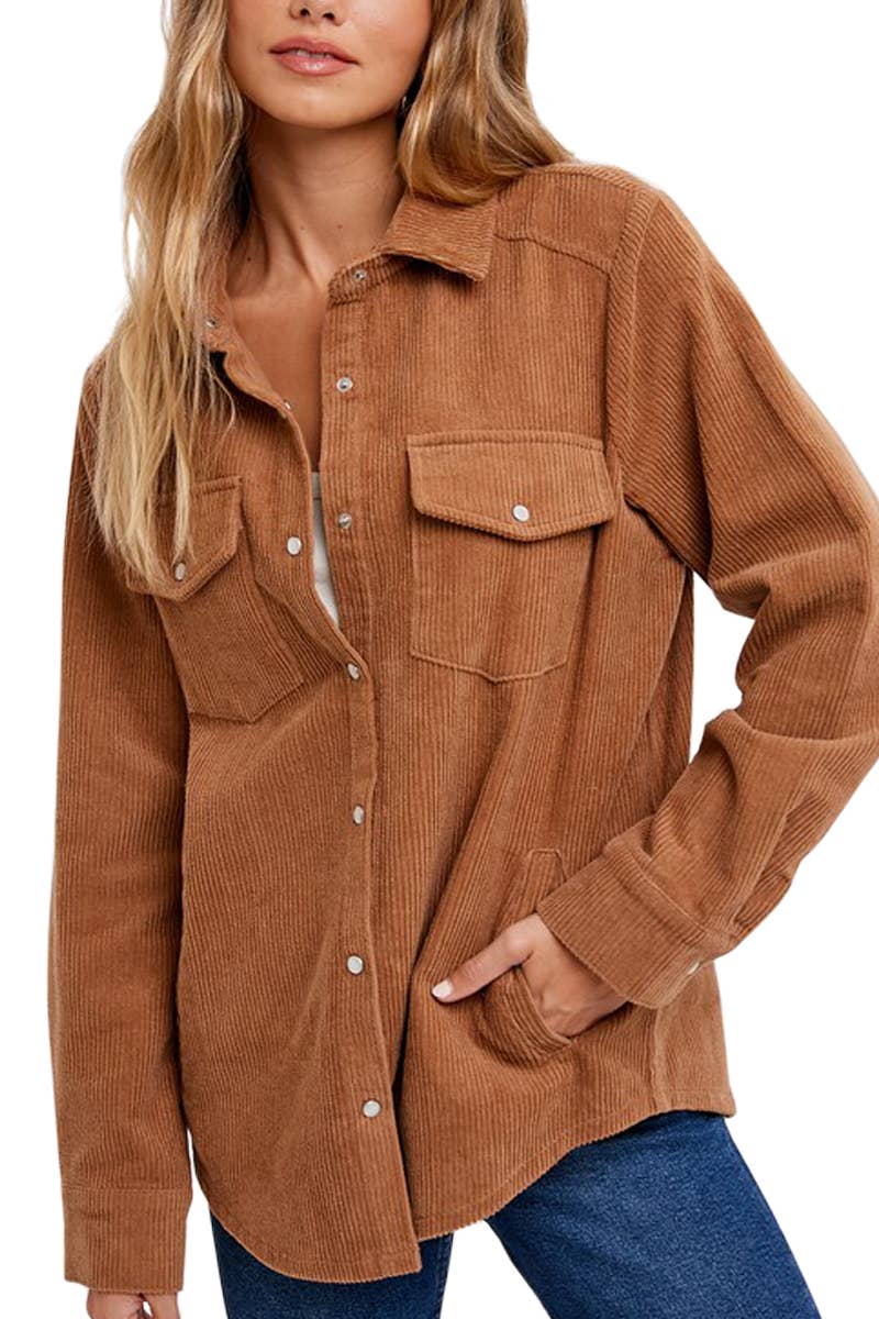 ***Image usage is allowed to the buyers who purchase from us via Faire only. SI-25336 ACID WASH FLEECE CROPPED SHACKET ACID WASH FLEECE FRONT POCKET CROPPED SHACKET - TWO FRONT POCKETS - CROPPED LENGTH - BUTTON CUFFS - FRONT BUTTON CLOSURE **Each item is unique, expect variations in color and finishing TOTAL BODY LENGTH: 22.5", BUST: 49" approx. - MEASURED FROM S/M - TRIM: 58% COTTON 37% POLYESTER 5% SPANDEX Fabric Content: 60% COTTON 40% POLYESTER SI-25336 Acid Wash Fleece Cropped Shacket (60% COTTON 40% POLYESTER) ASH MOCHA-160153 MAUVE-160155 MOCHA-160156 LT OLIVE-165904 BLUE GREY-165905 SLEET-165906 ASH JADE-174097 TURQUOISE-174602 FUCHSIA-174603 LT ROSE-174604 LT TEAL-174605 LT ORANGE-174606 B VIOLET-174607 MARLIN-174608 BLACK-176245 HOT PINK-176246 DK GREEN-185096 SI-25336 Acid Wash Fleece Cropped Shacket (60% COTTON 40% POLYESTER) ASH MOCHA-160153 MAUVE-160155 MOCHA-160156 LT OLIVE-165904 BLUE GREY-165905 SLEET-165906 ASH JADE-174097 TURQUOISE