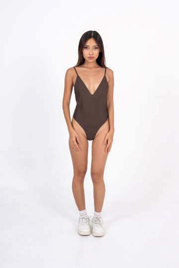 Specially designed luxe textured fabric with our comfort stretch technology, deep scoop back, white piping detail, fully lined, removable pads, and shelf bra support.