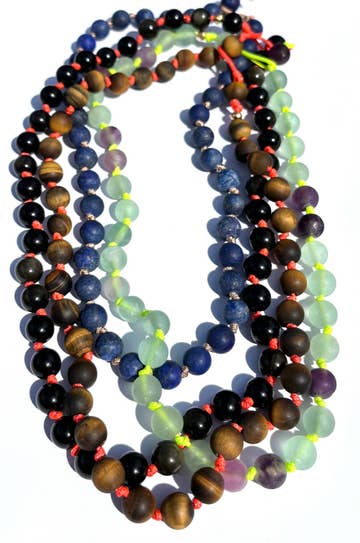 Asymmetrical beaded necklace. Bold shapes, wood beads, black, brown and teal/green colorway. Every necklace is unique as 10% of supporting beads are different in each piece. Designs are never replicated 100% to provide a truly custom and unique quality to the customer. "Notbeige-notboring” (adj.) describes bold, colorful art/jewelry designed by contemporary artist Mary Lindseth. Small batch jewelry made in the USA. Signature color palettes, wooden beads, surgical stainless steel, acrylic and Czech glass beads, lots of love. Unique, upcycled and always upbeat.
