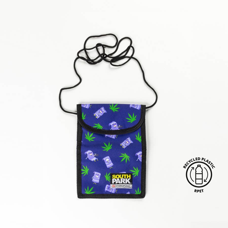The Hydroponic Bridge is a South Park X Hydroponic Official Collaboration retro tri-fold wallet featuring 6 card slots, ID window, zippered coin pocket, a keychain ring included and Velcro closure, made from rPet plastic bottles. rPet Product: Product made from Recycled Plastic bottles. Dimensions: 8.5x12.5x1.5cm 6 card slots Window ID Zippered coin pocket Keychain ring included inside Velcro closure Metallic label at front