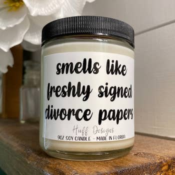 funny sarcastic candle - candle gifts for self or friends or co-workers smells like freshly signed divorce papers | soy wax candle