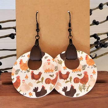 The perfect earrings for chicken lovers. Not only does this feature a fashionable chicken print, but we also cut our earrings in the shape of chickens too! Its like seeing double. Due to the design process, each chicken will be 100% unique and original. Differences in the print do exist and are to be expected. We do not include chickens of bad quality and only include those where the print is clear that it is reminiscent of chickens and hens. •Stainless Steel Hardware • Naturally Hypoallergenic and Great for Sensitive Ears • Material: Acrylic • Lightweight and Durable • Handmade in a studio located in Green Bay, Wisconsin