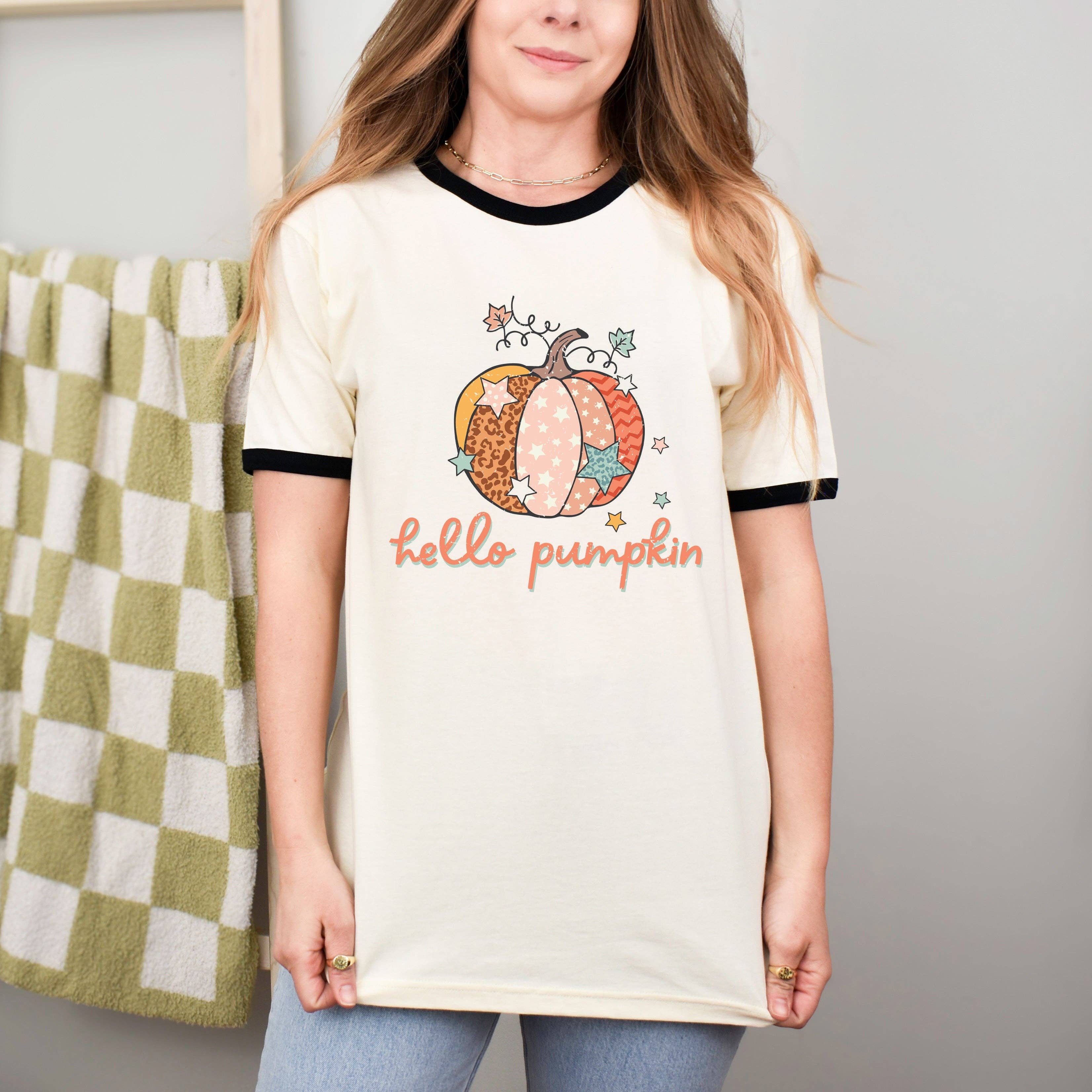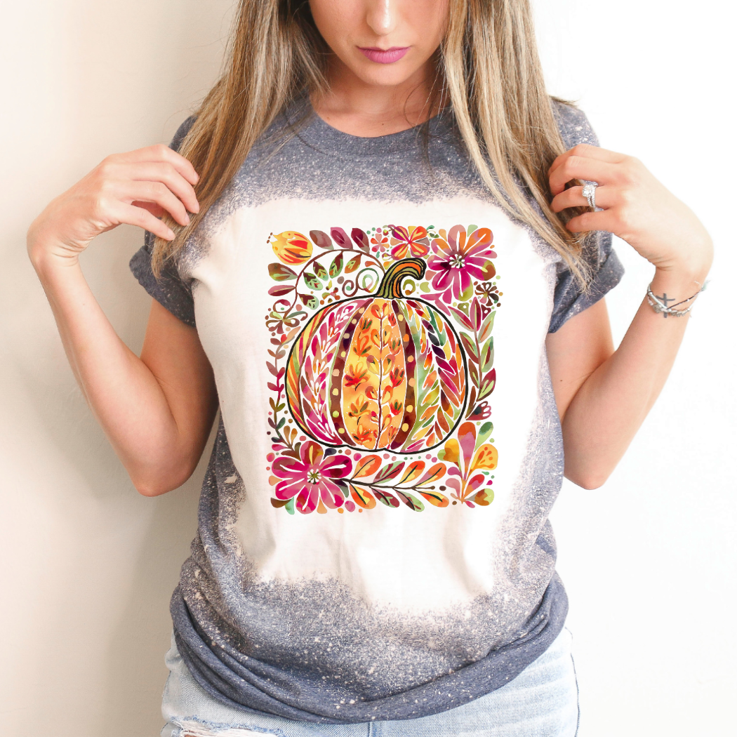 Orange, gray and white leopard print pumpkin packs a festive punch on this gray long sleeved tee. Search Keywords: 136621436, 136621437, 136621438, 136621439, pumpkin, Halloween, Thanksgiving