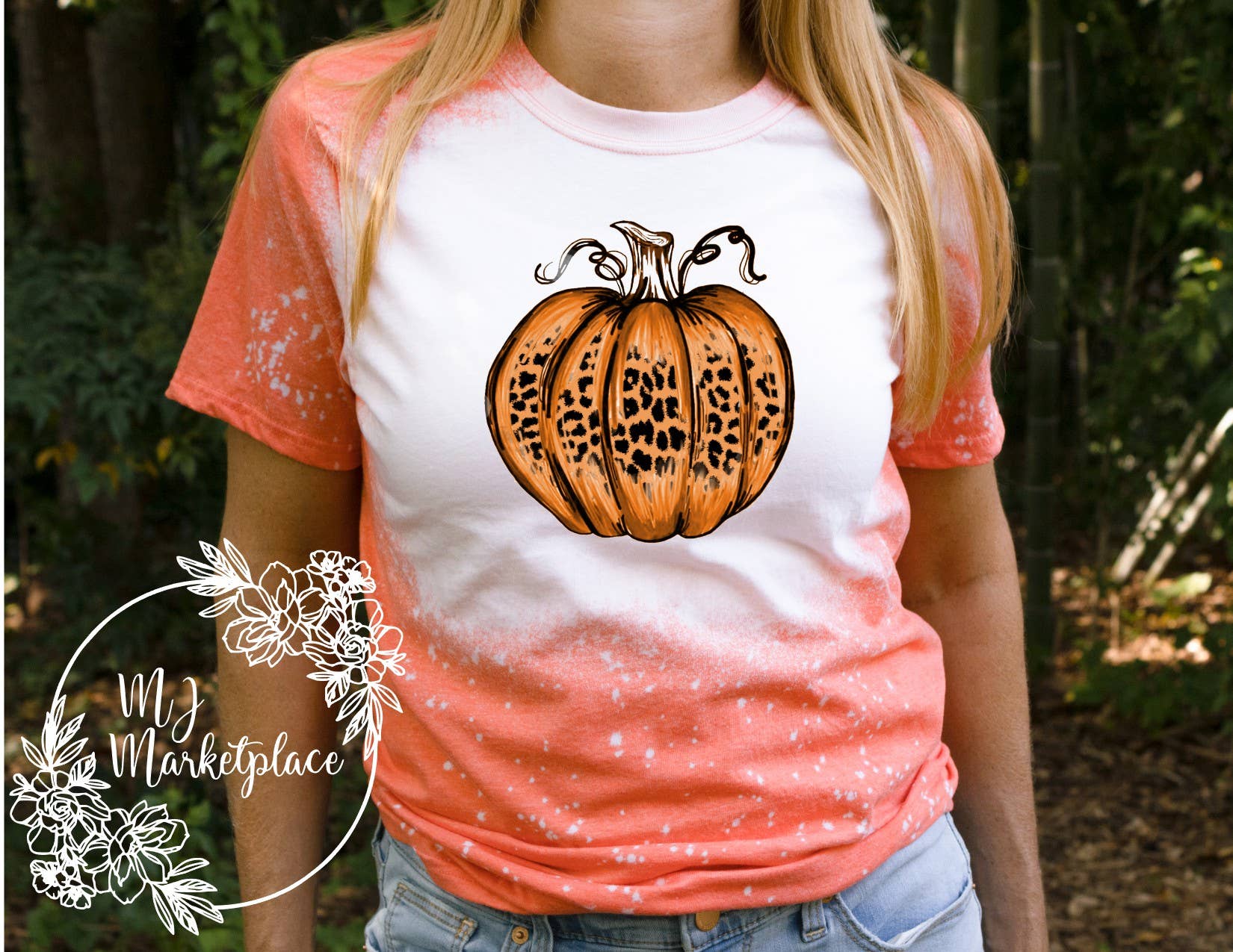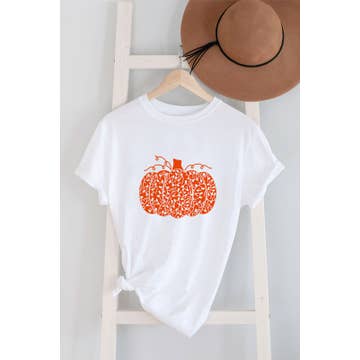 Wholesale Women's Leopard Pumpkin Long Sleeve Crew Neck T-Shirt Heathered White/Gray/Orange -Asst.