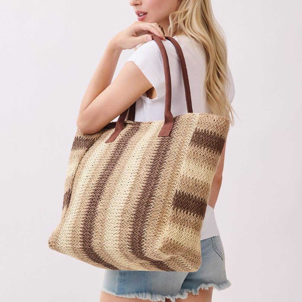 Straw Tote Bag - Made by 100% PE - Zipper closure - Wooden round handle - Zipper closure and a slip pocket **Size: Approx. 14 W x 12 H x 3.5 D in**