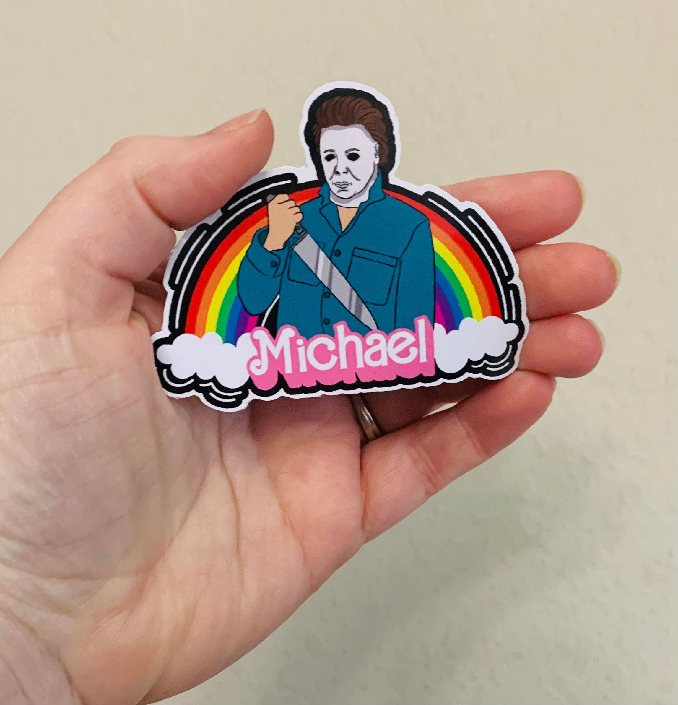 • Water resistant • Available in 2”, 3”, and 4” • Matte* or holographic finish This Barbie x Halloween mashup sticker is the perfect gift to ring in spooky season! Printed on premium waterproof vinyl and sealed with durable laminate for water resistance, our stickers are easy to peel and stick to water bottles, laptops, phones, kindles, and more. Please note: Quantities of 20 or more per sticker may have a glossy finish rather than matte. Pink aesthetic, cute, Funny sticker, 90s 2000s, cult classic, dbd, dead by daylight, video game stickers, pop culture, Laurie Strode, scary movies, horror villain stickers