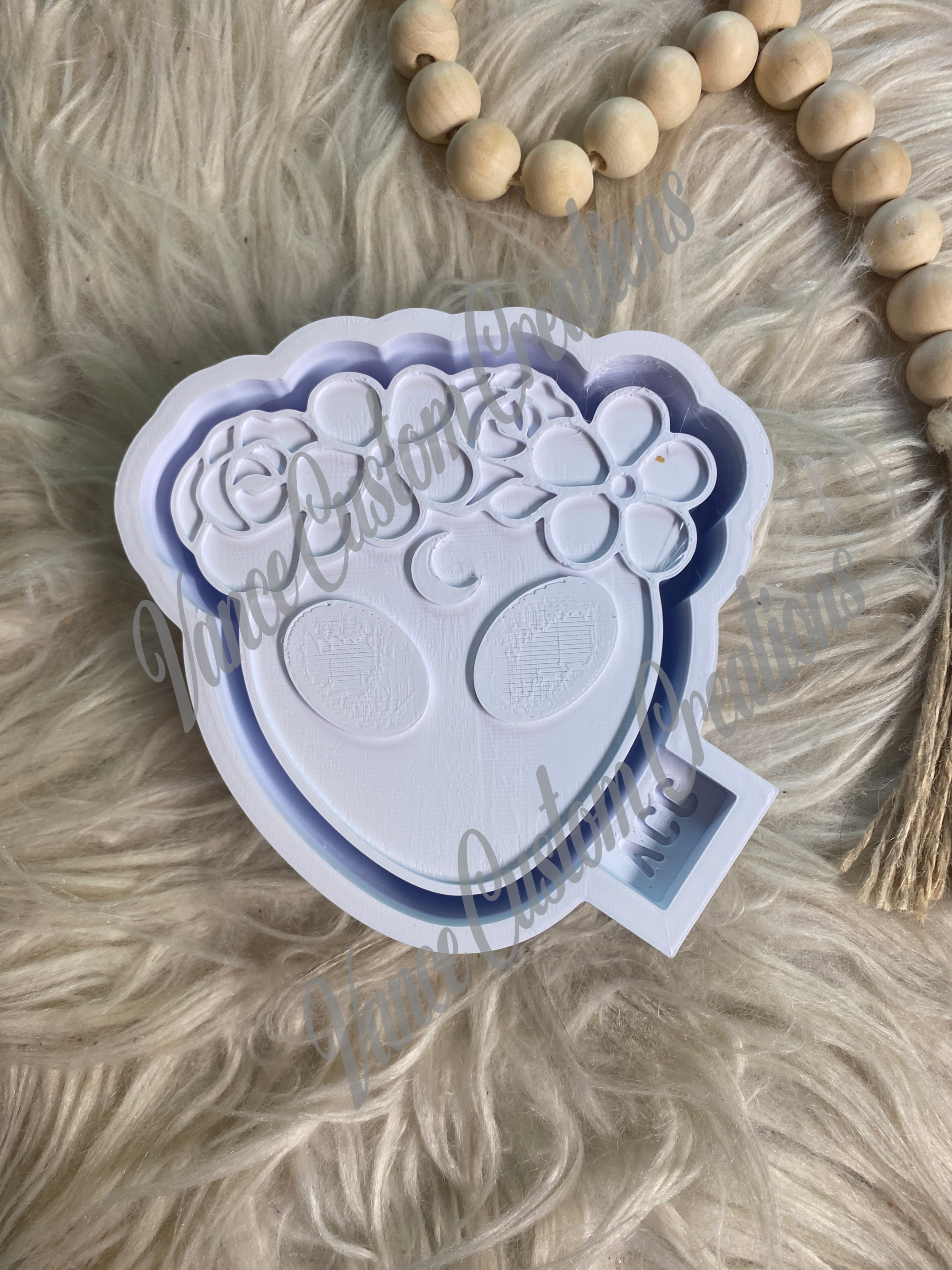 Photo is of the mold housing, however you will receive a silicone mold. The mold housings are 3D printed so there can be some lines and we in turn sand for a smoother finish. Make sure you pay attention to the detail of the mold. We do not accept returns or refunds for preexisting details of the mold. Please ensure that you bake your molds fully for the best results. No used items will be refunded. To see molds that we do not have listed here, visit our website www.vancecustomcreations.com