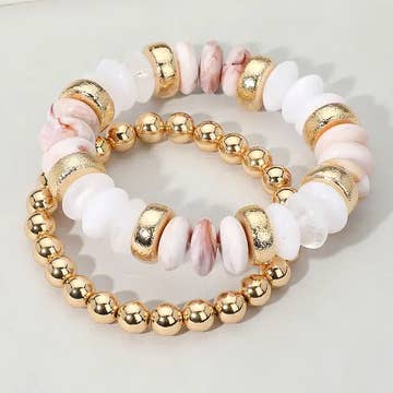 Wholesale 12PCS - Pearl Metal Ball Seed Faceted Beaded Stretch Multi Layered Bracelets