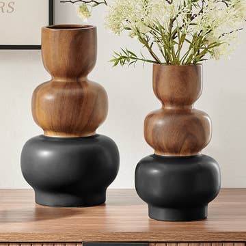The Athena Vase combines vintage-inspired design with modern sophistication, featuring a matte and glossy black finish for dramatic contrast. Its aged look and timeless palette make it a versatile addition for boutiques, appealing to customers seeking bold statement pieces. Offered in medium and large sizes, it works beautifully as a standalone accent or paired for a layered effect. A strong merchandising item for both rustic and contemporary assortments. Dimensions: Medium: 5.5" Dia x 4.75" H Large: 7.25" Dia x 6.25" H Material: Ceramic