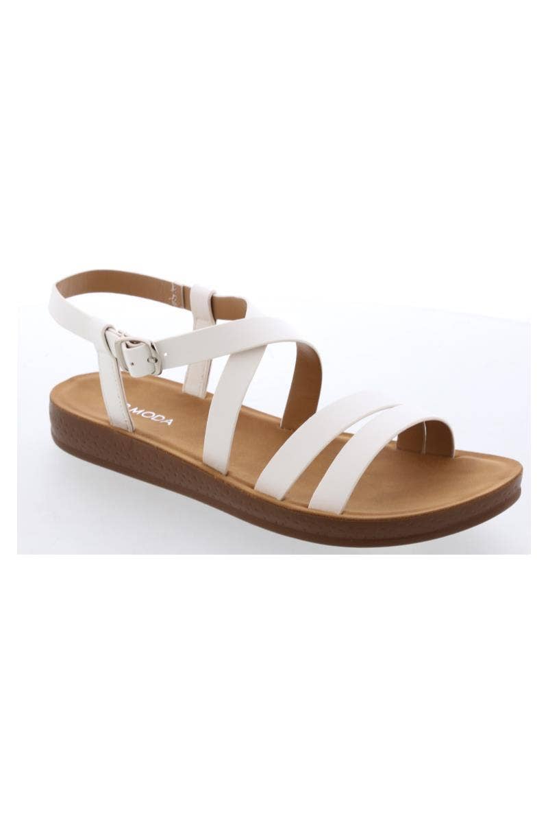 KAYLEE-01 Minimalist Sandal Step into effortless style with the KAYLEE-01 flat sandal. Featuring wide crisscross straps for a sleek design and easy slip-on functionality, this sandal is perfect for casual outings and laid-back days. Material: Faux leather upper with synthetic sole Heel Height: Flat Closure: Slip-on Fit: True to size Style: Everyday minimalist Color: White, Black, Camel, Sand, Snake 1 Case includes 12 Pairs G12 - 6 for Size9, 6 for Size10