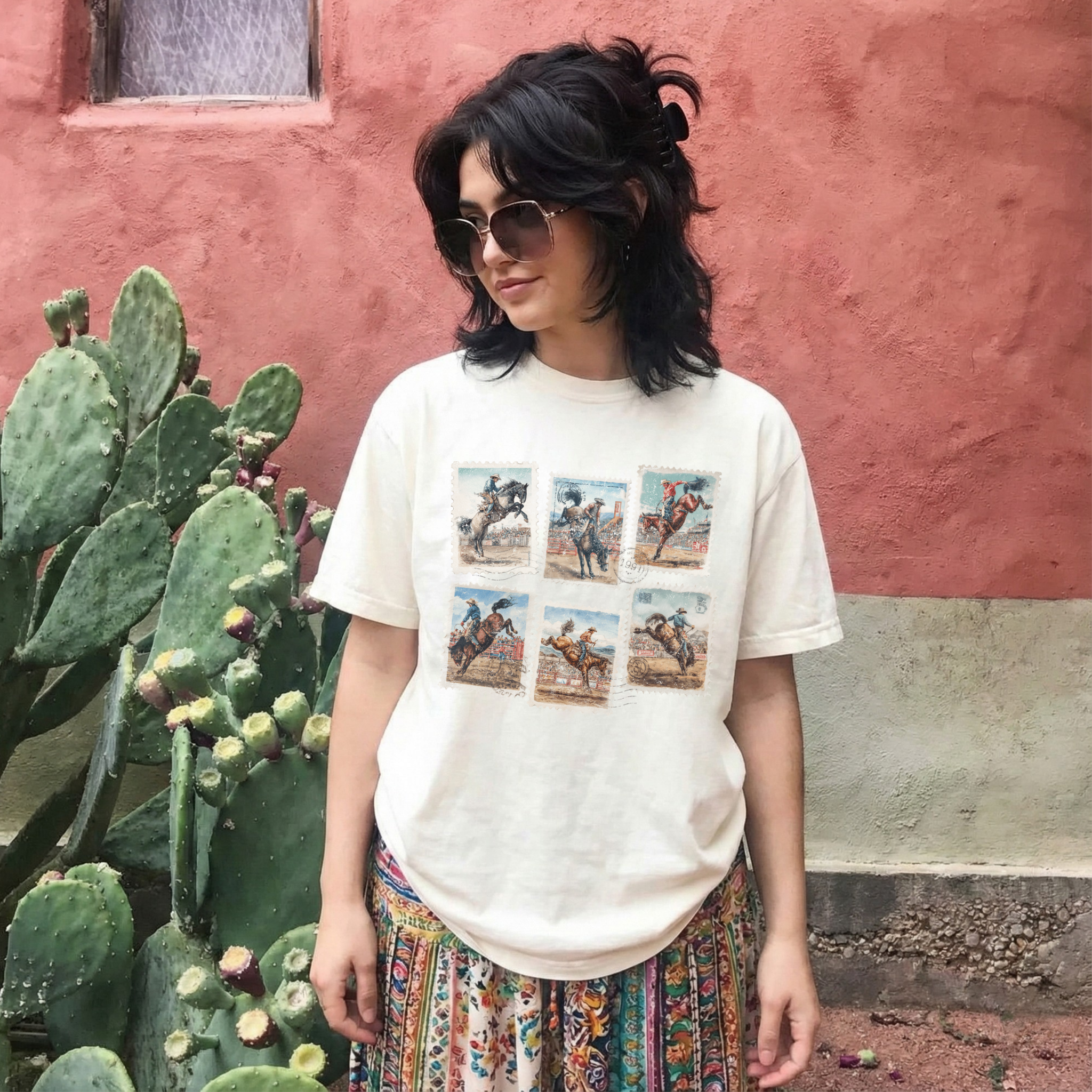 Wild West Motifs Vintage-Wash Oversize Graphic Tee