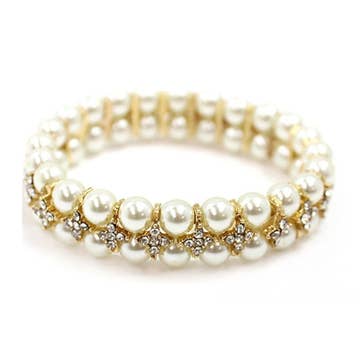 Wholesale CSTB04 - Shell and Gemstone column bracelet - Cream, Pearl