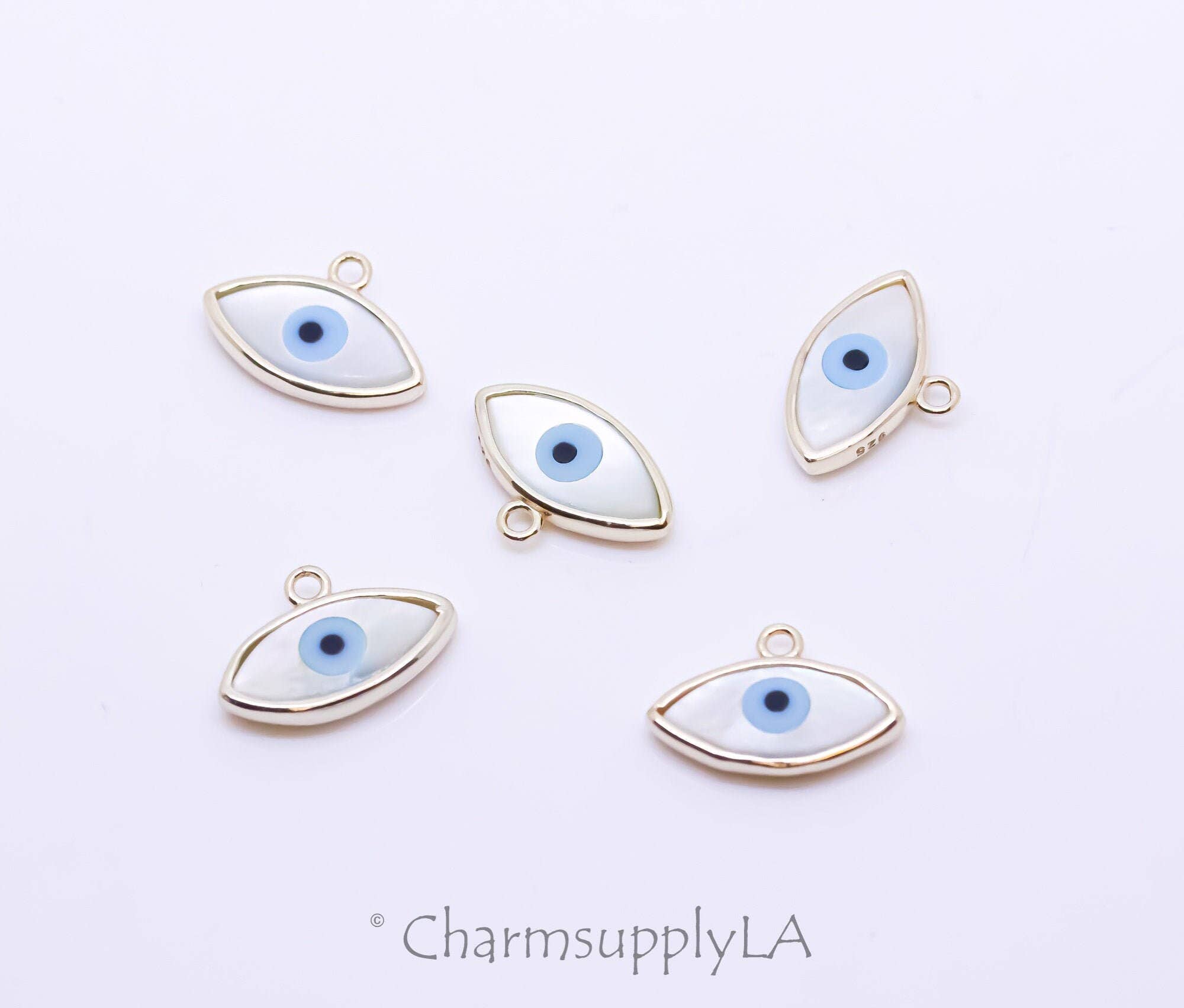 Description & Details The eye is one of the most powerful symbols known to many cultures. It can be an indicator of good, evil, protection, wisdom, knowledge, secrecy and mystery. • Material: High Quality Colored Glass ∙ Enamel • Finish: Hypoallergenic ∙ Gold Plating • Dimensions: 20 - 60 mm charms • All our work is custom made by hand with love