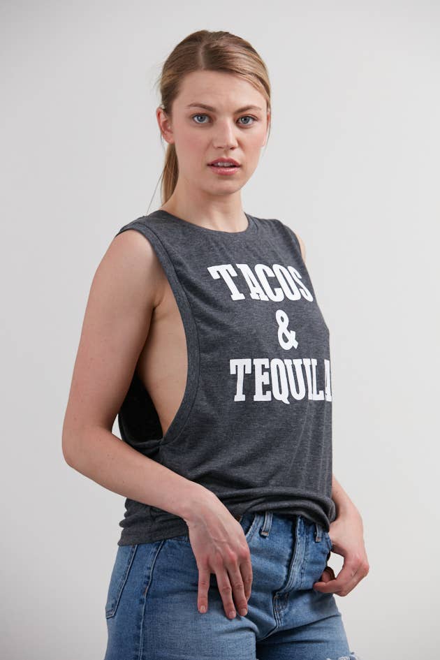 This women's workout crop tank is perfect for fitness lovers who balance gym time with taco cravings! Featuring bold text, it's a fun and relatable addition to any activewear collection. Great for gyms, boutiques, and athleisure brands. -4.2 oz Airlume combed and ring-spun cotton/polyester -Relaxed, cropped fit -Racerback -Raw edge armholes -Side seams -Tear away label PRINT > These shirts are printed with premium plastisol screen printed transfers > Will not crack and peel like vinyl when cared for properly CARE INSTRUCTIONS > Turn garment inside out, wash cold, tumble dry low, hang dry for best results > Do not use fabric softeners or bleach SIZING > Take a look at the photos for specific size charts for this item > Please note that these are unisex shirts, and not a fitted women’s style. > Size DOWN for a more fitted look - Size UP 1-2 sizes for a more oversized look > TIP: Lay your favorite shirt down and measure armpit to armpit, and compare to the size chart in the photos