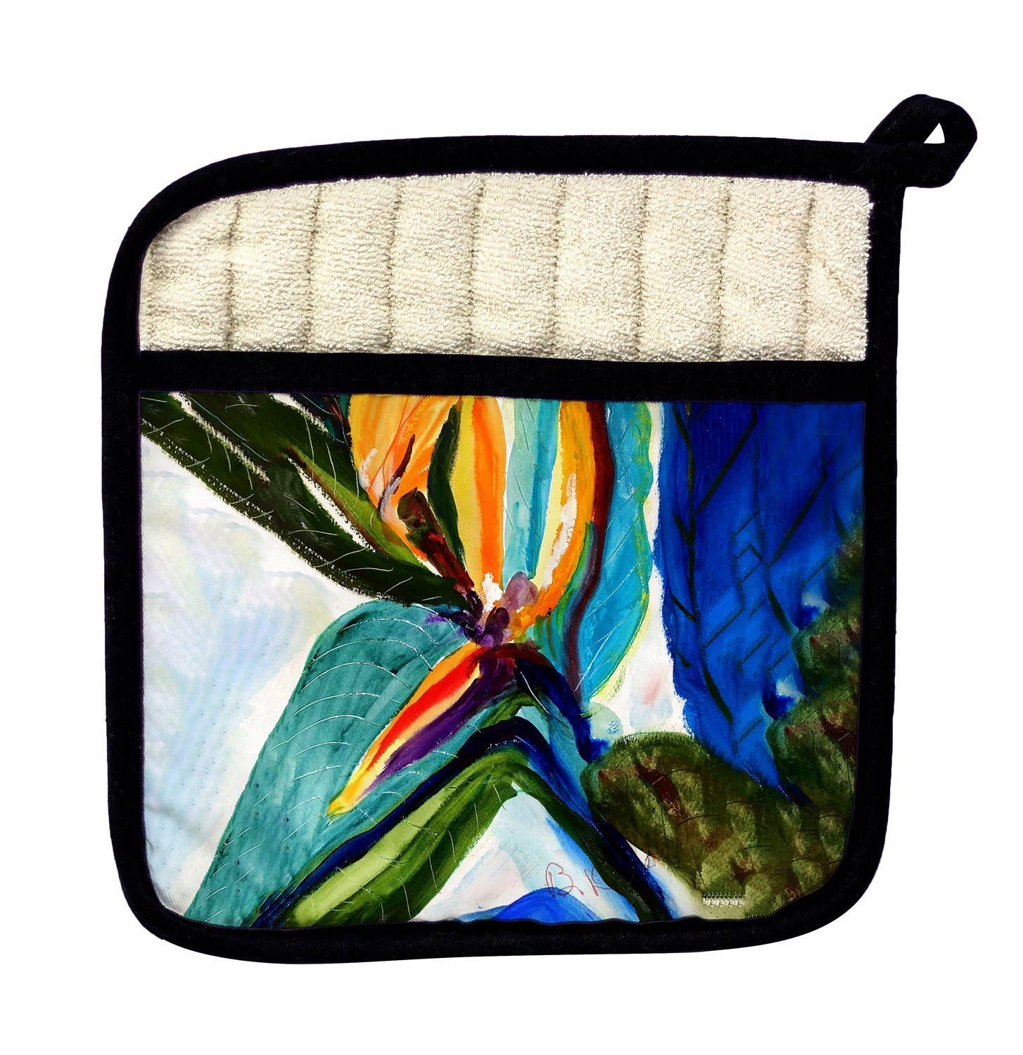 Ultra heat-resistant padding makes sure your hands stay safe + comfy Little loop keeps it right where you need it An oven mitt your hands - and eyes - will want to reach for Material: Cotton Care Instruction: Machine wash cold with like colors, tumble dry low. Do not bleach