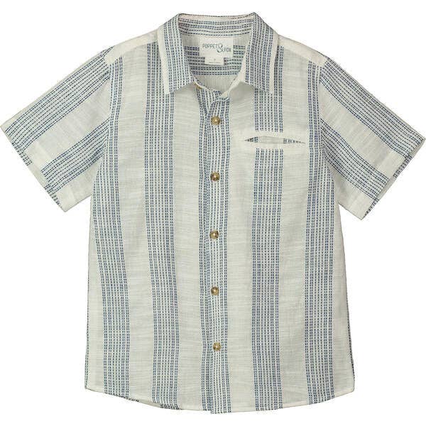 Arthur is THE timeless shirt to have in your little boy's wardrobe. It is in white cotton poplin with long sleeves and a conventional collar. To be worn in a classic way under a jacket with a bow tie or more casually, by rolling up the sleeves and opening one or two buttons, it is versatile!