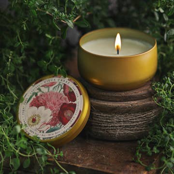 Made in United States Color: Gold Fragrance Family: Earthy & woody Handmade: Yes Ingredients: vegan coconut wax, phthalate-free fragrance oils Material: Steel Season: Year-Round Wax Type: Coconut Product Language: English and Spanish Weight: 141.75 g (5 oz) Dimensions: 0.3 x 0.3 cm (0.1 x 0.1 in) UPC: 850065258393 Product Materials: Recycled and Vegan Packaging: Recycled Production: Ethically sourced and Fair trade
