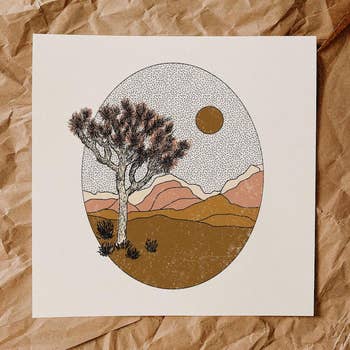 All paper prints 11x14" and smaller come display-ready. They are packaged individually in a clear plastic sleeve, with a rigid backer to keep the print protected, and a thank you card from the artist. Paper prints 16x20" and larger will come rolled, NOT ready to be displayed. We offer a 24x36 framed fine art print as a display option for larger prints. All canvas options will come stretched around a wooden stretcher bar and are display-ready. Prints may be cropped slightly depending on size chosen. “Valley View” was inspired by the desert landscapes of Arizona. It is a looser landscape and was not based on one exact location, but more of the general colors and feel of this region. I used oil paint and oil pastel to create the original piece. If you have any questions, don’t hesitate to reach out!