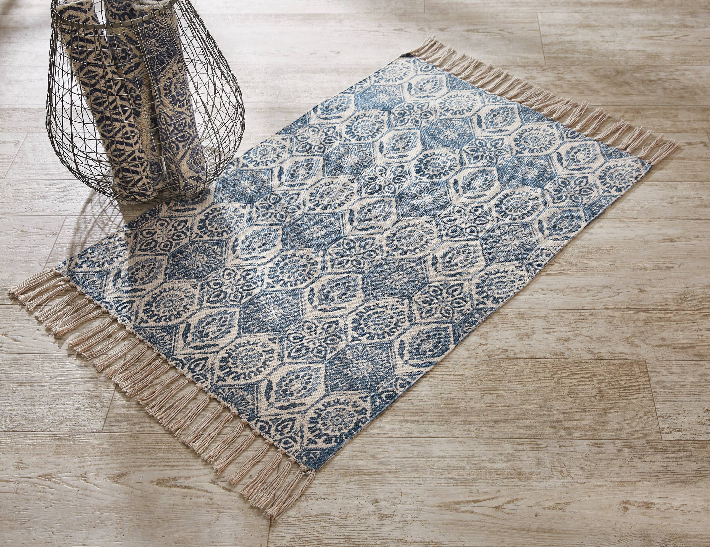 2’ X 4’ Blue And Beige Floral Hearth Rug