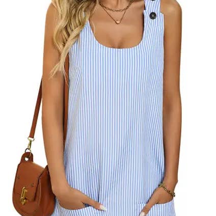 SKU: CWDSD7142-DENIM-S Made in China Aesthetic: Casual and Classic Care Instructions: Hand wash Dress Style: A-line Embellishment: Pleat Fabric: 100% POLYESTER Fit: Contemporary Neckline: Round neck Occasion Theme: Everyday Occasion: Everyday and Holiday Pattern: Solid Season: Spring/Summer Skirt & Dress Length: Mini Sleeve Length: Sleeveless Product Language: English Product Materials: Recycled Packaging: Recyclable and Recycled Production: Ethically sourced and Fair trade