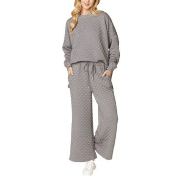 -Snowflake Allover soft brushed loungewear set p -Matching set -Top and bottom set -Sleep lounge wear -Soft fabric, casual style, every day wear. -Model size: Small ( 5'10" 31- 23- 34 ) -Made in USA