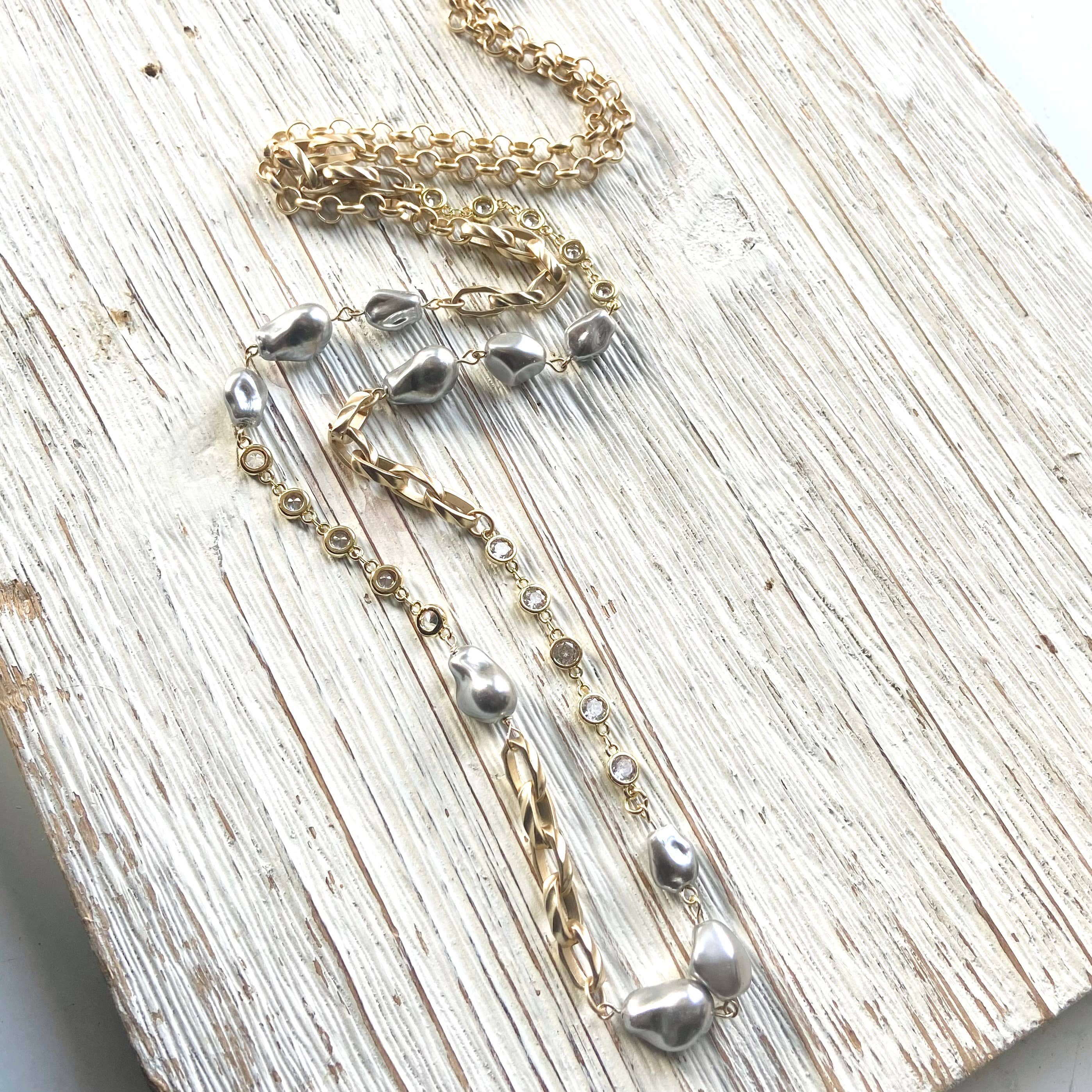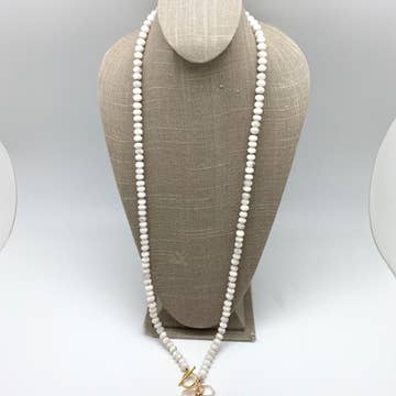 White Pearl Beaded Chain by Foot, Pearl Chain Necklace CH168