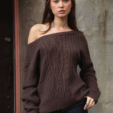 Wholesale ",..._ Washed Cable Knit Sweater
