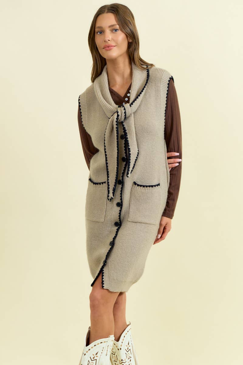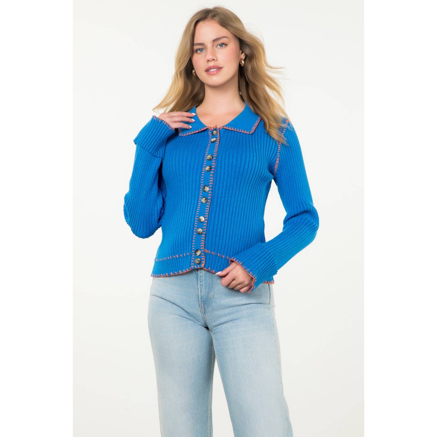 RIBBED KNIT CARDIGAN WITH GOLD BUTTON ACCENTS