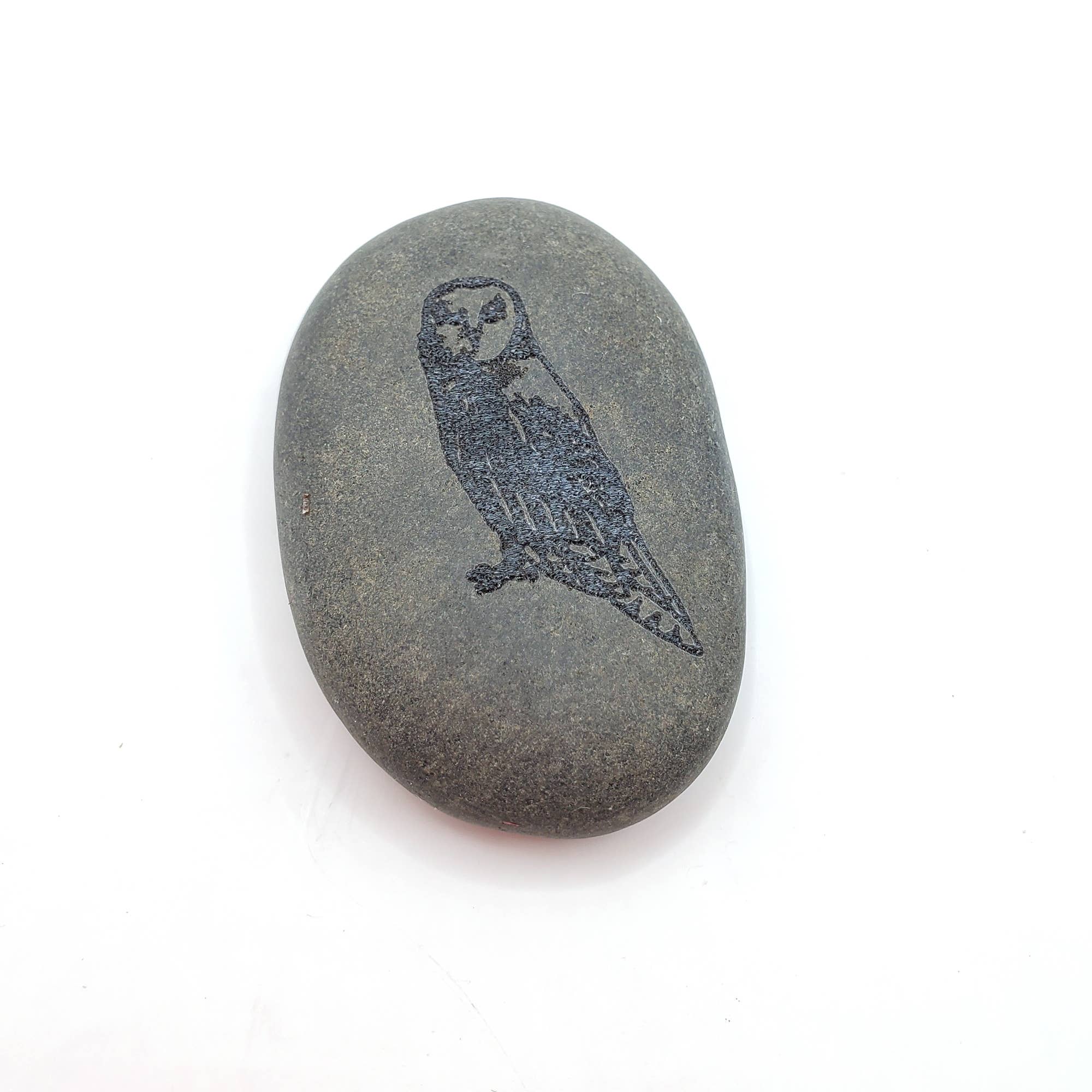 Trinity Knot Worry Stone: This river stone is engraved with a Trinity design. The Trinity knot design first appears in the historical record around 400 AD when Coptic missionaries traveled to Ireland and proceeded to produce the highly esteemed Illuminated manuscripts. It symbolizes the threefold Godhead - the three points represent Father, Son, and Holy Ghost, and the interwoven circle depicts the unity between the three. Because we are using natural river stones shape and color may vary slightly from what is pictured. Because we create these stones with laser engraving, depending on the kind of stone engraved, the engraving can appear lighter or darker than the stone itself and the engraved part can sometimes have a glassy texture. Approximate Dimensions: 1.5 - 2 inches