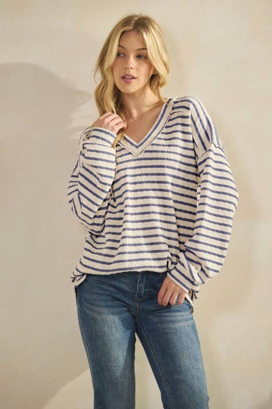 The Regina top. Made with high quality pointe knit. The back is mixed with cotton poplin stripe. Round neck, long sleeves, and slightly ruffled back. Easy relax fit. Perfect everyday wear. NOTE: Plus size is $5.00 more