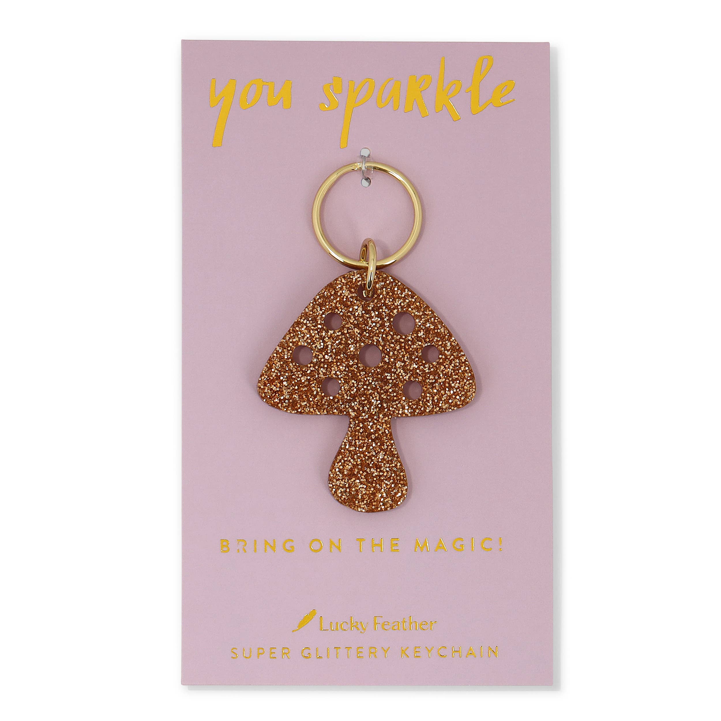 Illuminate your keys with Lucky Feather's Gold Glitter Key in a delightful Smiley Face shape. This keychain not only serves its purpose but also adds a spark of joy to your everyday accessories. It's more than just a keychain; it's a symbol of positivity and good energy, reflecting our brand's goal of spreading inspiration. Make this trend-setting, affordable accessory part of your collection or gift it to uplift someone's spirits.