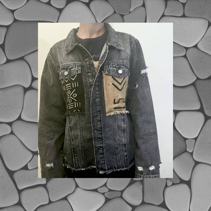Hand painted boyfriend fit denim jacket. One case pack includes one small, medium and large. Delicate wash and dry.