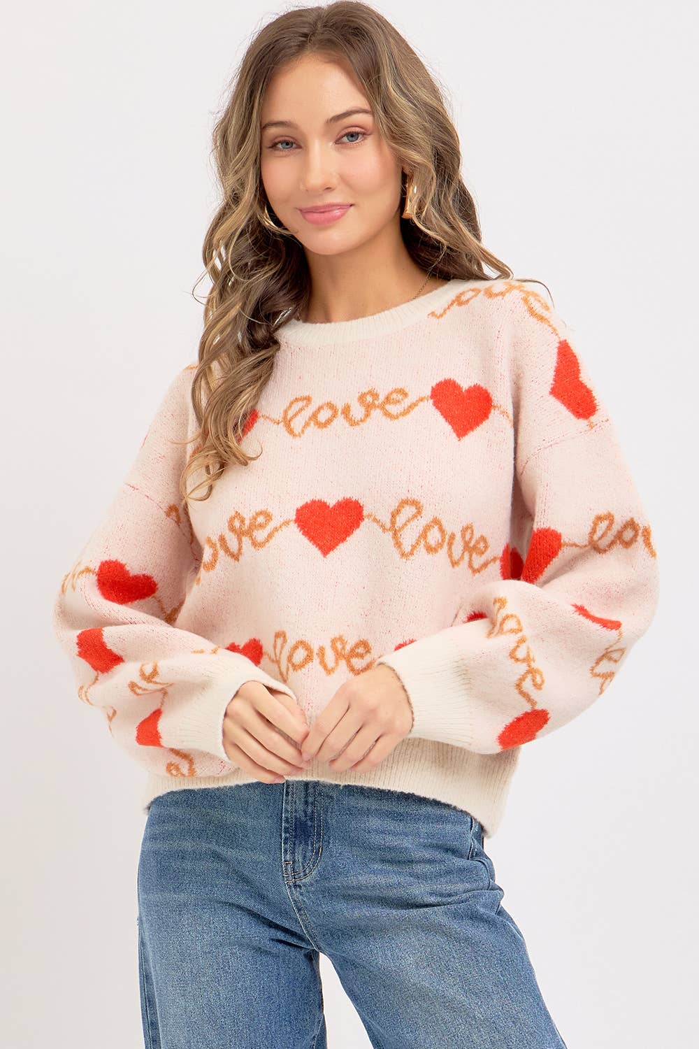 Material: Polyester Weight: 490g Package: Single Piece Feature: Multiple Colors Available Love Pattern Jacquard Design Round Neck Long Sleeves Pullover Style Soft Knit Fabric Versatile Spring/Autumn Wear Note: Size: Please refer to size chart in images