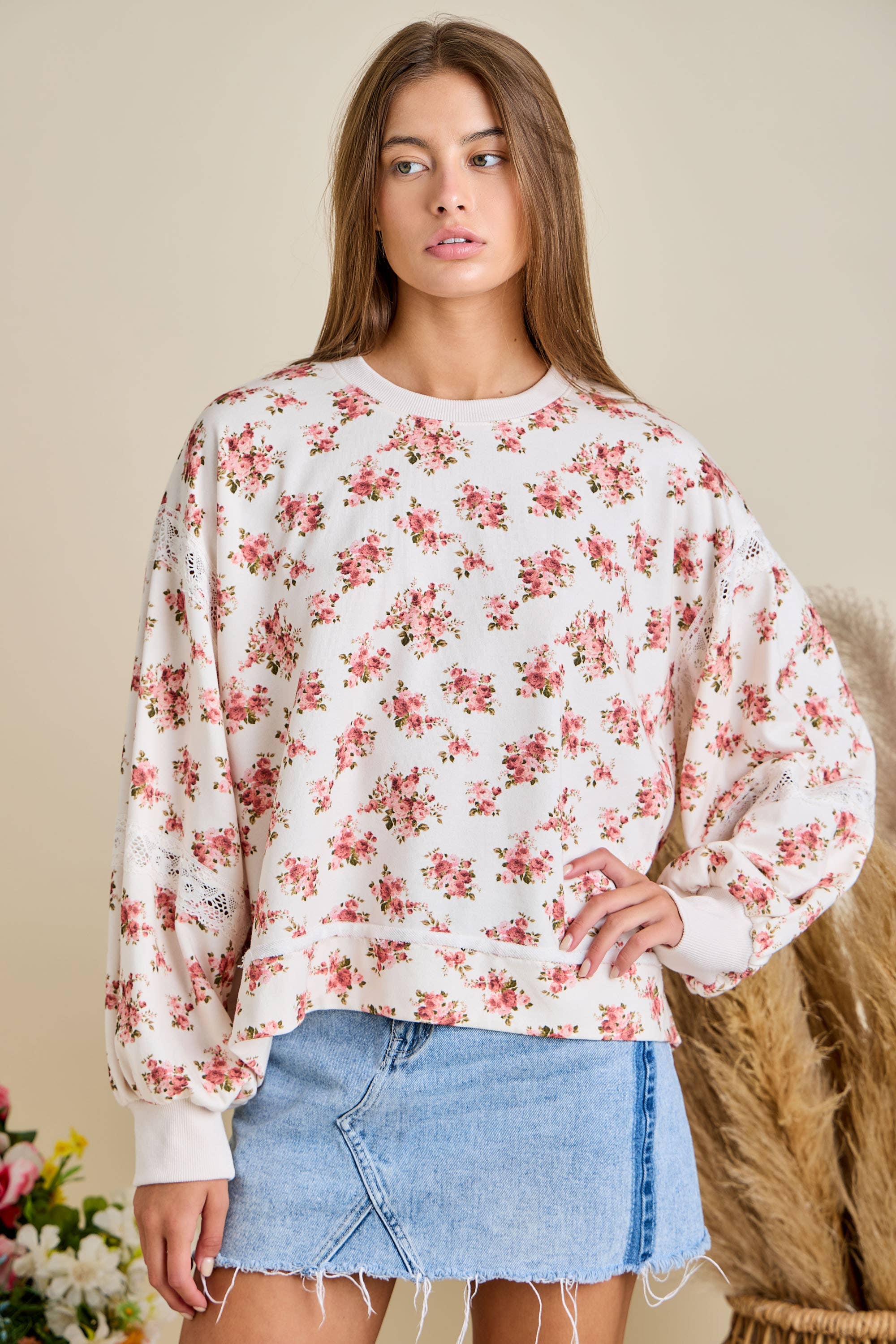 SM WARDROBE - Wholesale Sweatshirt - Women's - ROOSTER FLORAL PRINT SWEATSHIRT4