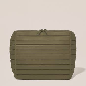 Cute and functional, this Cosmetic Bag has plenty of room for all your necessities (including full-size toiletries!) to use daily or for travel. 10" L x 2.5" W x 7" H Neoprene with Webbing Accent Stripe Interior Lining Interior Zipper Pocket Gold Toned Metal Hardware Zipper Closure Coordinating Tote & Purse Strap Available