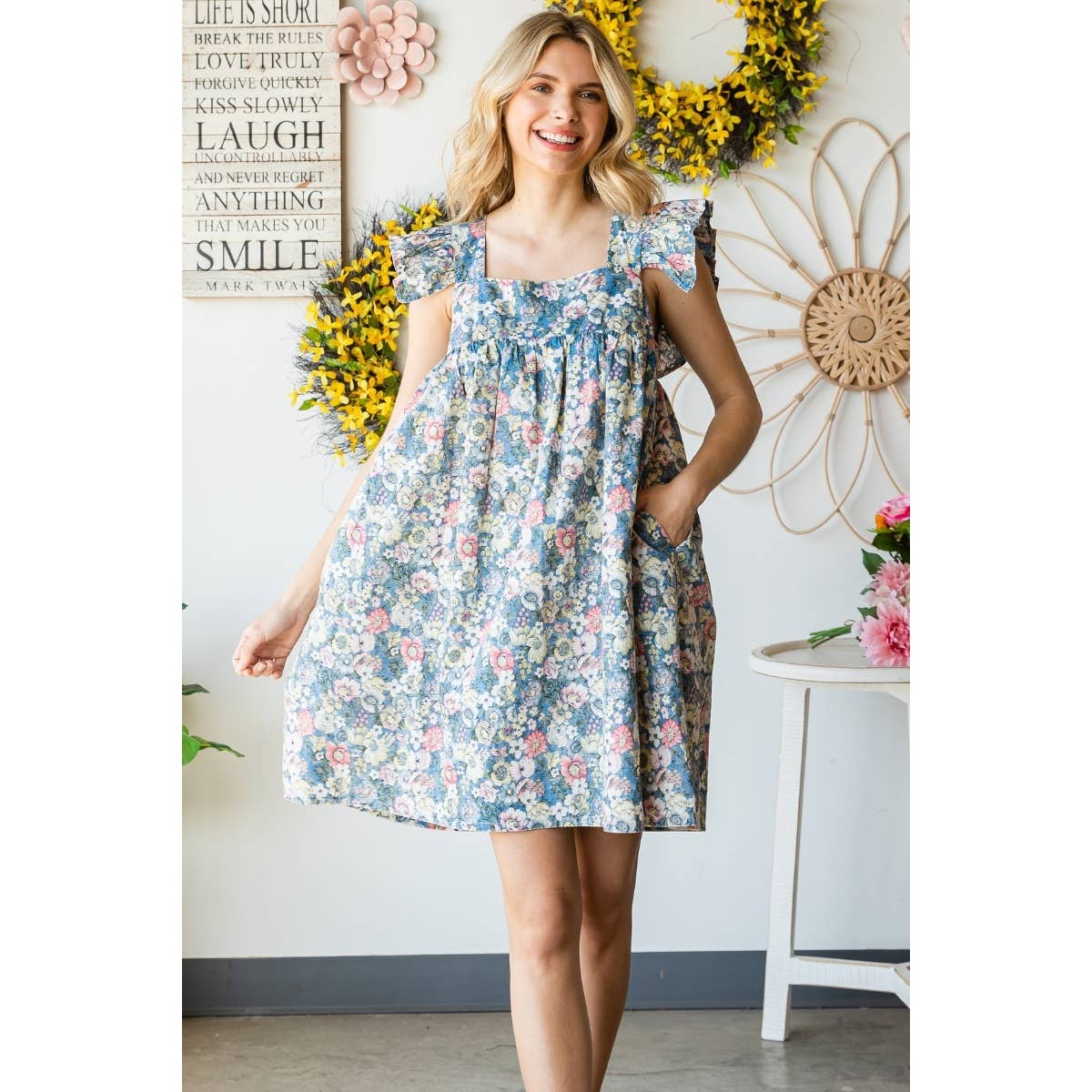 The Embroidered Strap Flowy Jumpsuit by Veveret is a chic and elegant piece. Made of 100% cotton with a contrasting 100% rayon, this jumpsuit offers a comfortable yet stylish look. Veveret, a Los Angeles-based women's clothing brand, brings you this versatile piece. Quality and affordability are always our priority, and this jumpsuit is no exception. Elevate your wardrobe with this trendy and sophisticated piece.