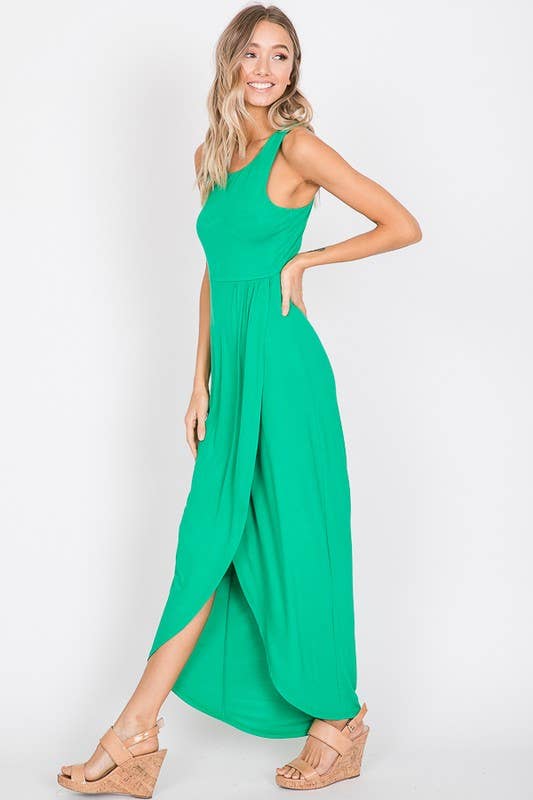 Wholesale Plain Wrap V Neck Split Sleeveless Maxi Dress BFZY535
