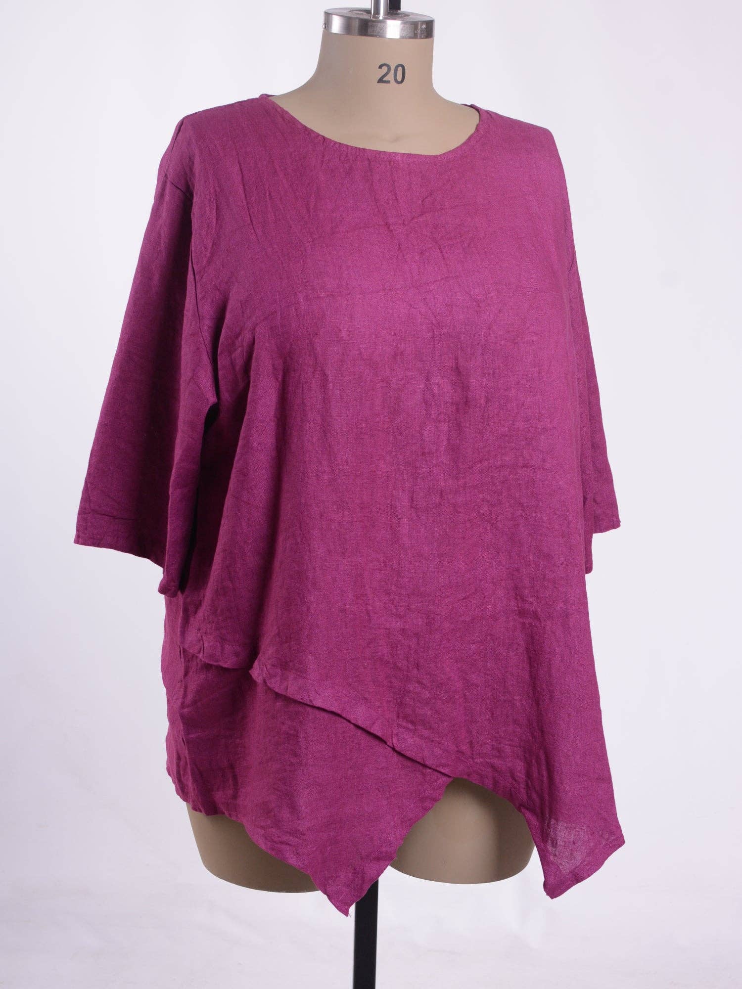 Scoop Neck Long Sleeves Asymmetric Hem Quirky Design 95% Cotton 5% Elastane Bust - 66 inches (167 cm) Hips - 80 inches (203 cm) Length - 30 inches (86 cm)shortest part - 39 inches (99 cm) longest part
