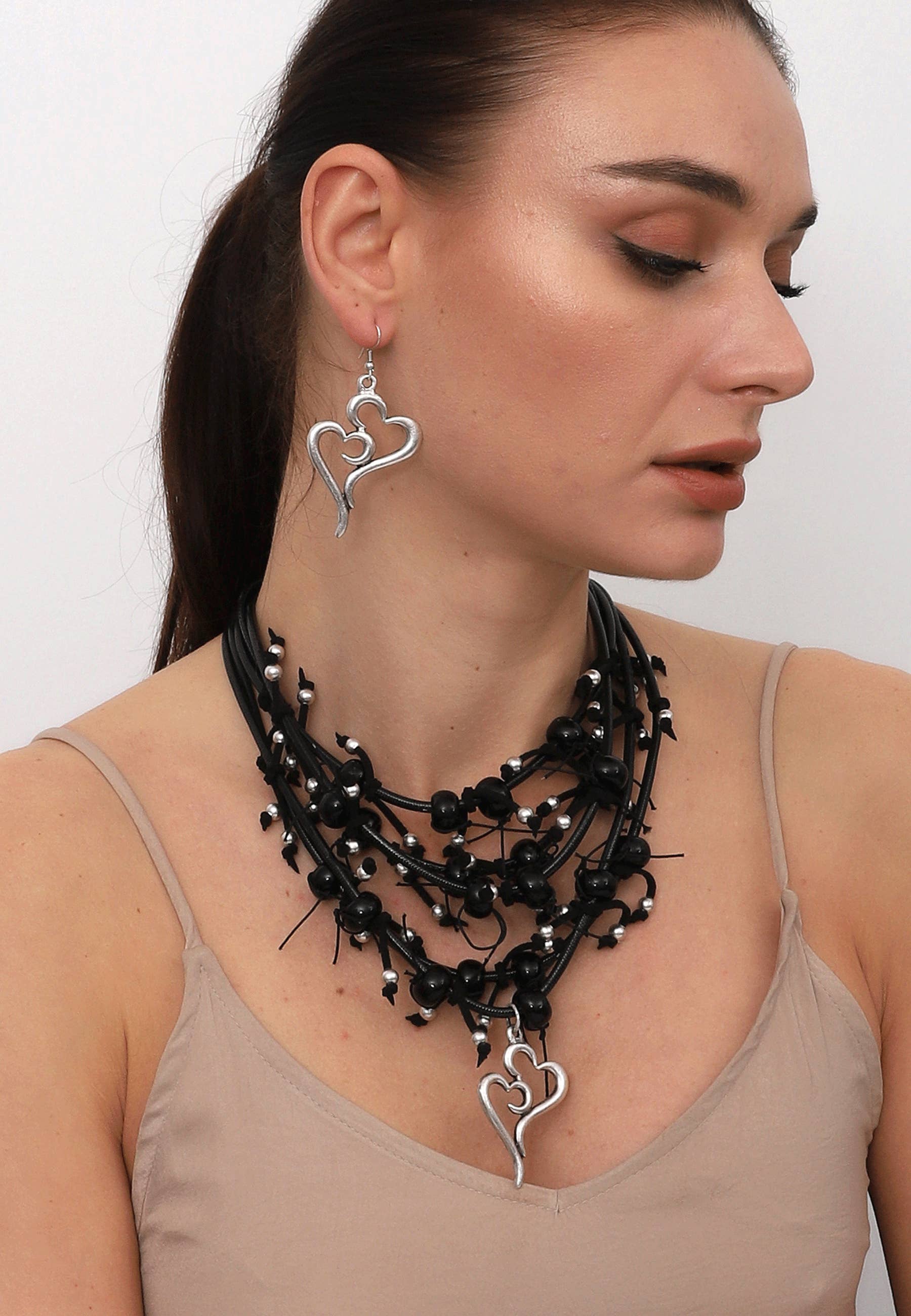 â–º Silver Plated Handmade Beaded Leather Women Necklace and Earrings Set. Special Bohemian Design.. â–º Material : Silver Zinc & Leather â–º Best Option for Halloween Party & Festivals Necklace | L : 20,22" Pendant | W : 1,50" L : 1,50" Earrings | W : 1,50" | L :1,50 " â–º Antique Silver Beaded Jewelry Set â–º Natural Ethnic Hand Crafted â–º Fashion Jewelry gift for Women â–º Hypoallergenic â–º Lead, Nickel, Cadmium free.