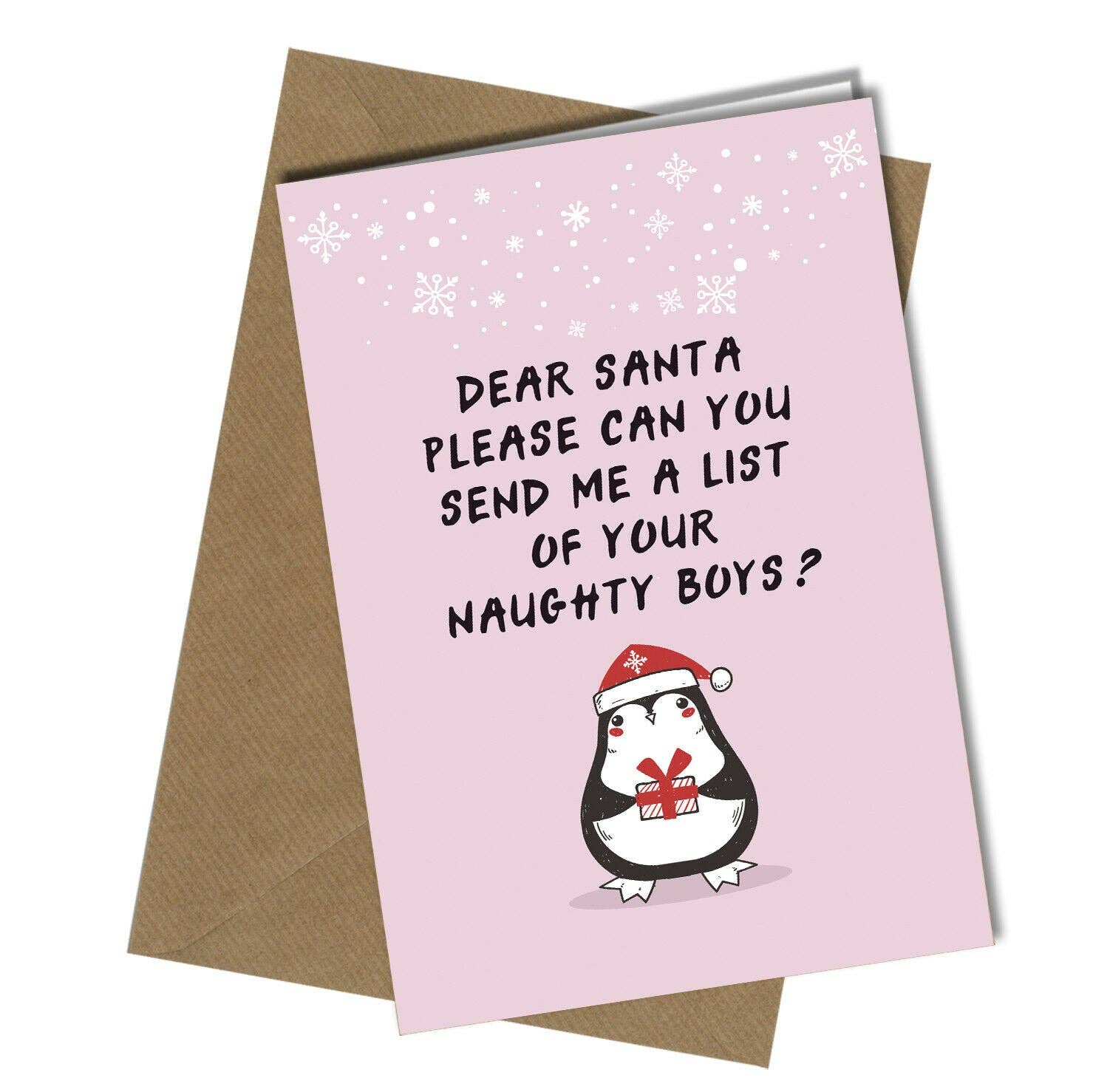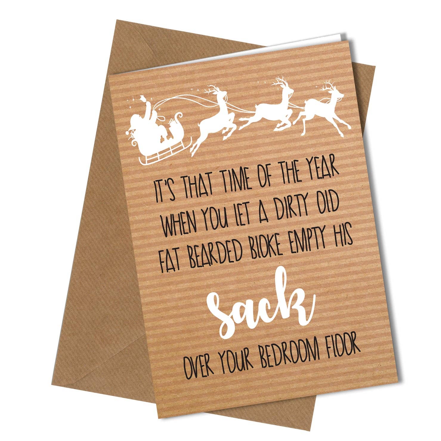 "Remember Santa knows when you've been wanking so pack it in ..." All our cards are printed on white quality 350gm card. Every card will be sent with a quality 120gm blank envelope Size A4 folded to A5 Folded Size = 148 x 210 (8 x 6 inch)