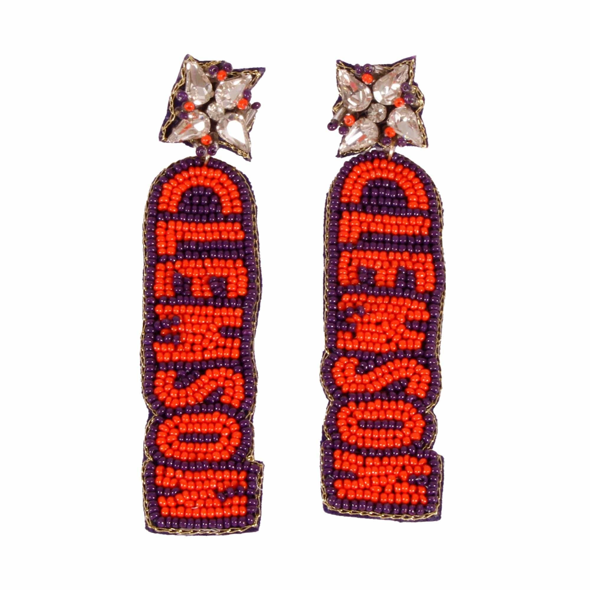 Rather it’s a sporting event, class outing or even those fun little date nights, our Ivy Collection will upgrade any outfit! This collection has quickly become one of our favorites with its bold colored graphics along with stunning accent beads to help you support your team where you are. The earrings feature a stud post and the logo is beautifully accented with a color gem. The length of the earring allow some movement when worn. All items are made from zinc alloy and are sealed with a anti-tarnish coating. Each piece is designed and assembled by working moms and grandmothers at our production office just outside Tulsa, Oklahoma. Some components are Made in China then assembled proudly in the USA.