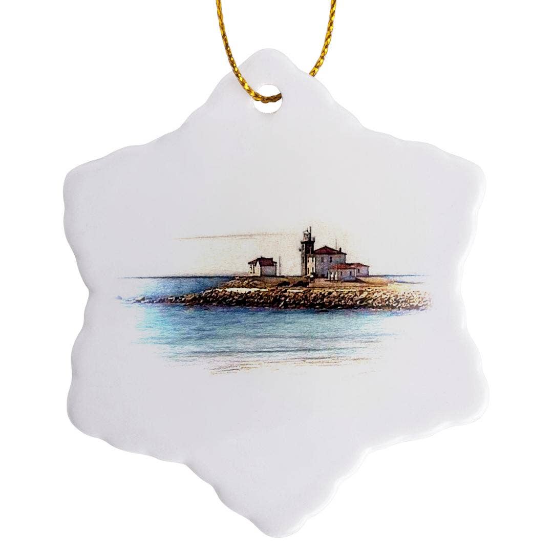 3 inch circle or star shaped ornament, designed & printed in Rochester NY porcelain ornament. with red ribbon hanger, individually packaged philoSophie's illustration, copyright Joanna Nicole, Inc., philoSophie's All Rights Reserved.