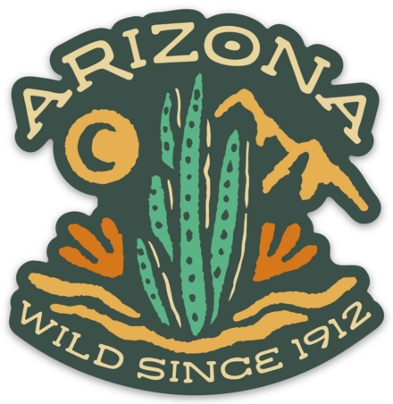 Add some character to your belongings with the AZ Wild Since 1912 Sticker. Proudly display your love for the Grand Canyon state with this quirky and playful sticker. Made to last, this sticker is a perfect addition to any collection. Size: 2.95" x 3" Arizona Sticker | Grand Canyon State | National Parks | AZ Stickers