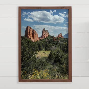 Archival quality giclee print, matted to a standard frame size. Features reproduction of original oil painting Flatirons Daybreak, a painting that highlights the beauty of sunrise lighting up the Flatirons from Chautauqua Park in Boulder, Colorado. Comes packaged in commercially compostable plastic-alternative sleeve. Available sizes (measured to outside of mat): 5x7" (unmatted), 8"x10", 11"x14", 16"x20"