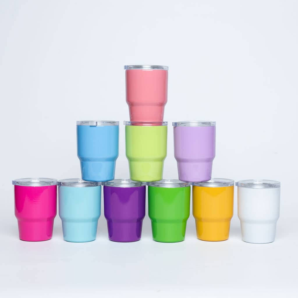 Your favorite tumbler- but teeny and tiny! Complete with a convenient plastic lid and straw, these tiny tumblers come in a bunch of cute and fun prints! Insulated for espresso, wellness, or tequila shots! Holds 2 fluid ounces Includes plastic lid + stainless steel straw Keeps liquids hot or cold Made of stainless steel WARNING: Cancer and Reproductive Harm - www.P65Warnings.ca.gov