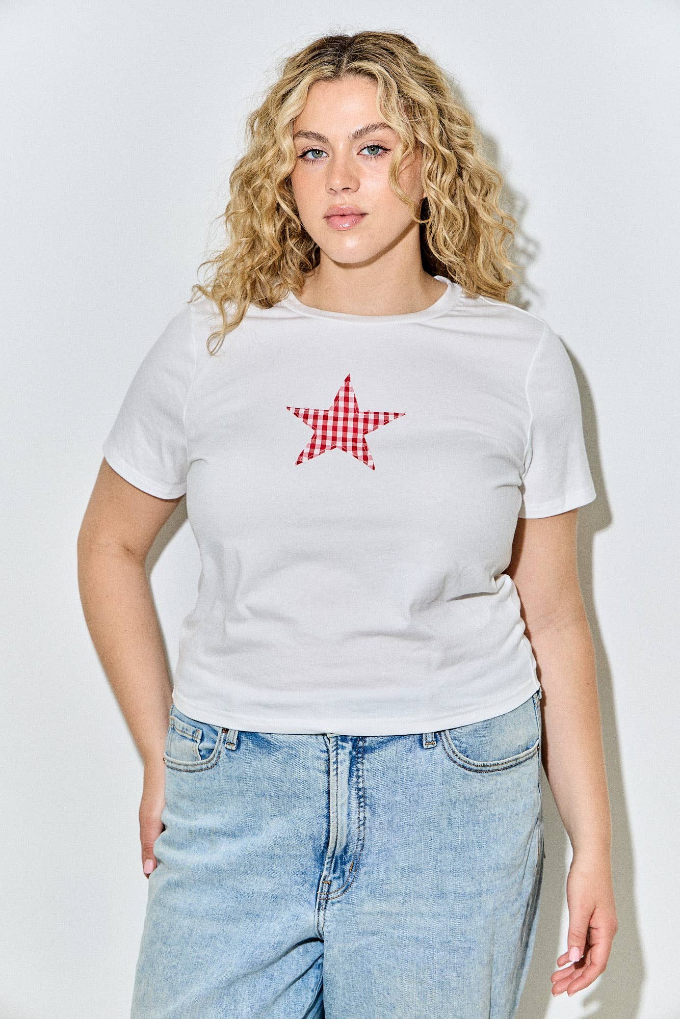 +T-SHIRT DRESS +AMERICAN FLAG +FLOWY SLEEVE MODEL IS WEARING S